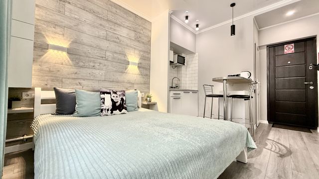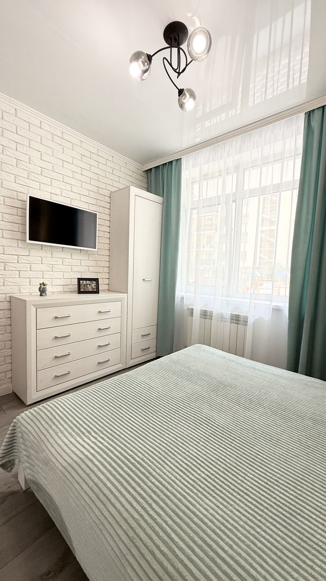 Предлагаем вам посуточную аренду стильной квартиры с балконом и отдельной спальней, расположенной на первом этаже здания, в шикарном новострое бизнес класса ЖК "Rich Town", г. Ирпень